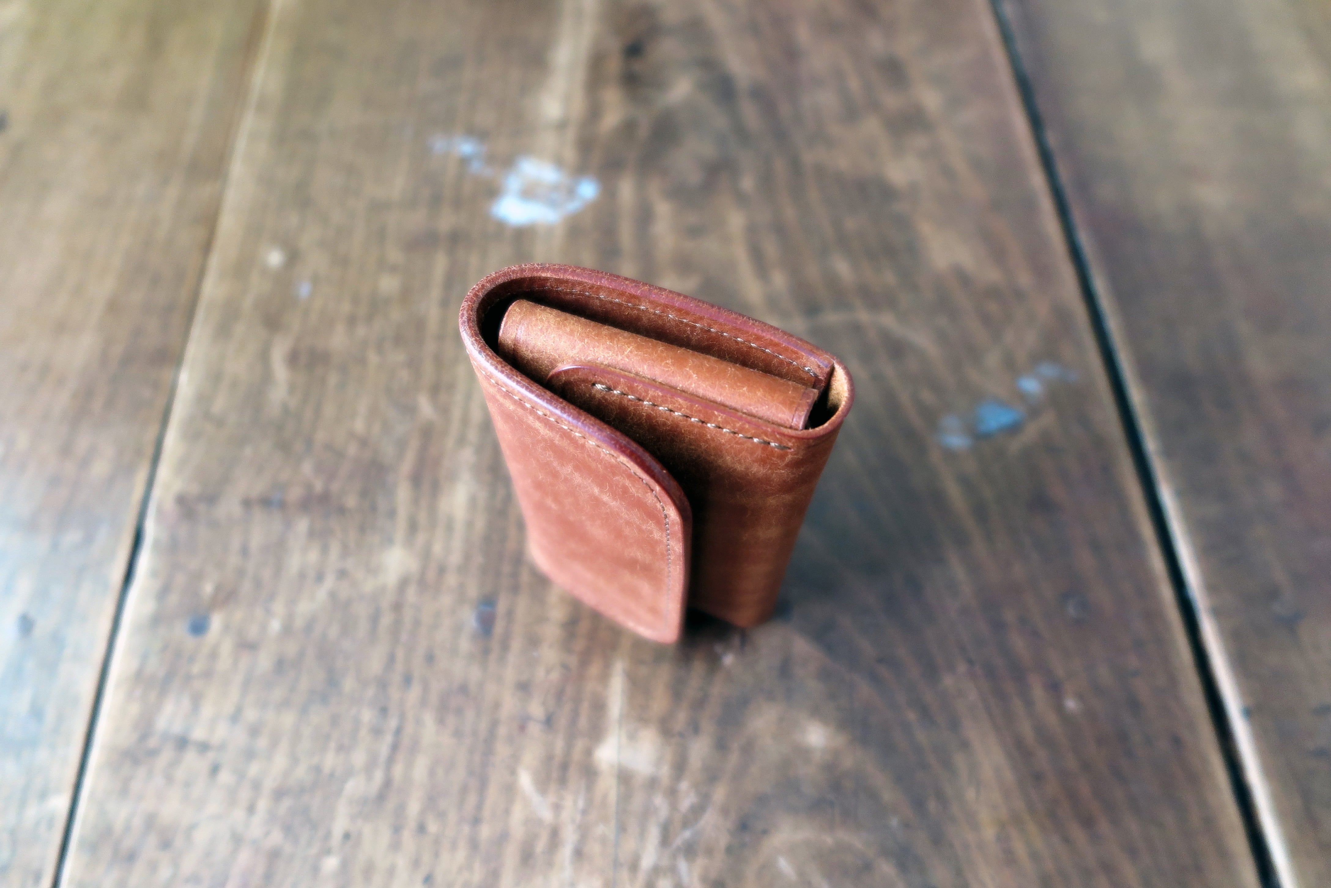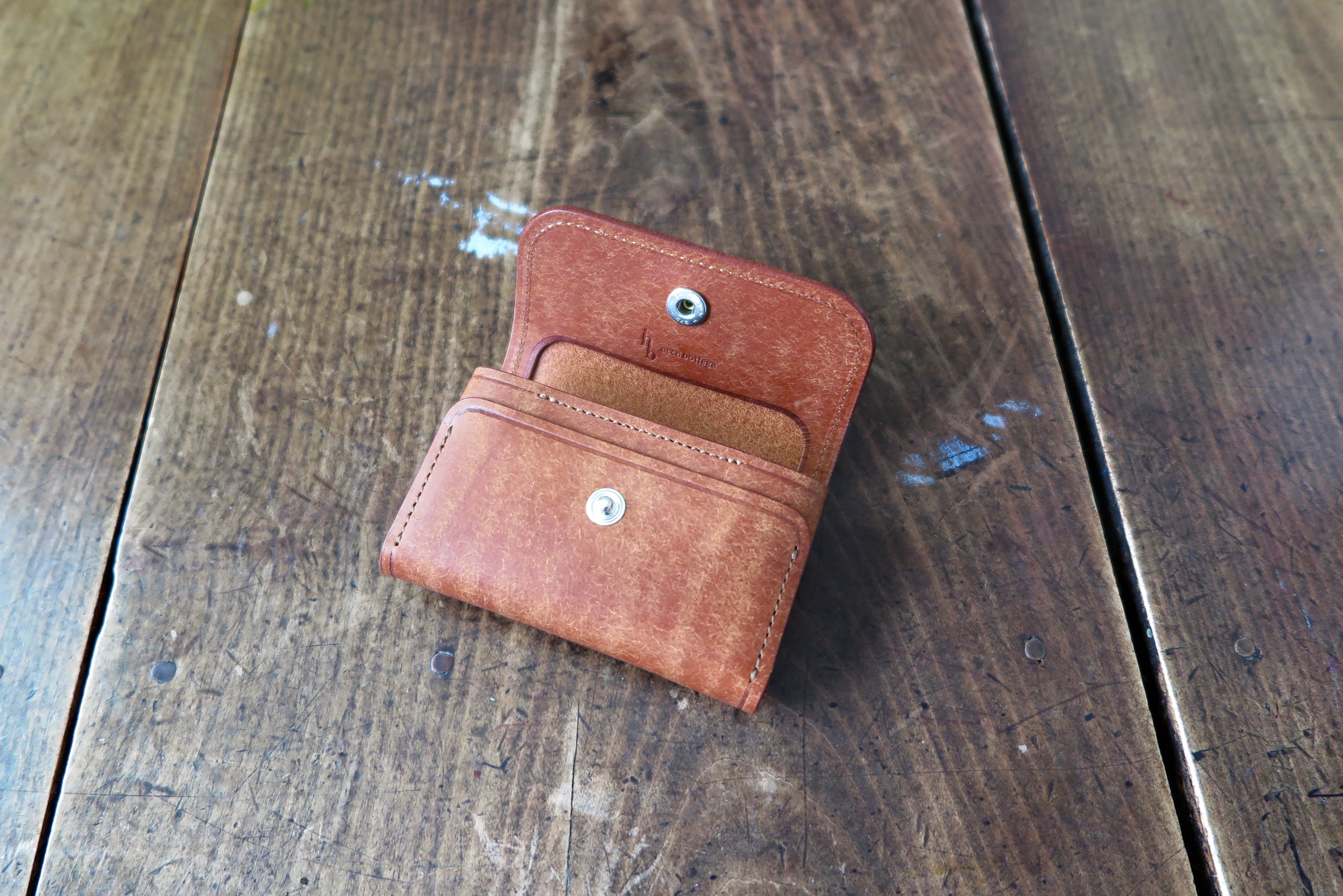 イタリアの名門タンナー、バダラッシ・カルロ社で古来のバケッタ製法と呼ばれるタンニン鞣しを施された革。表面を毛羽立たせた和紙のような個性的な革です。