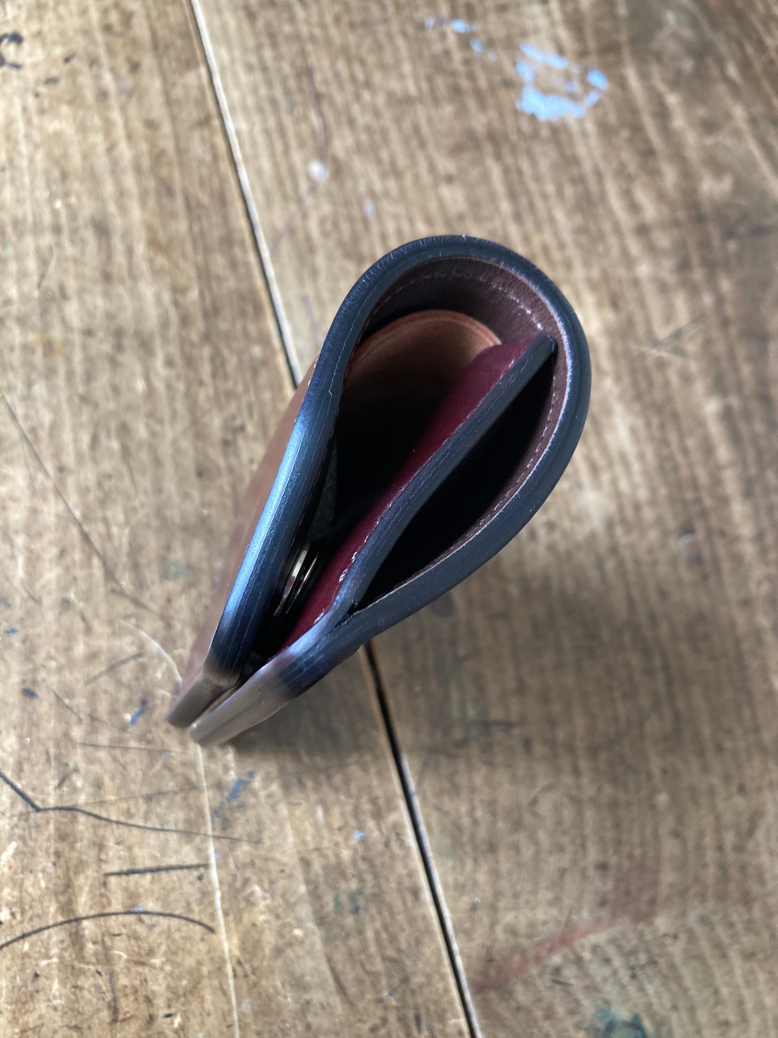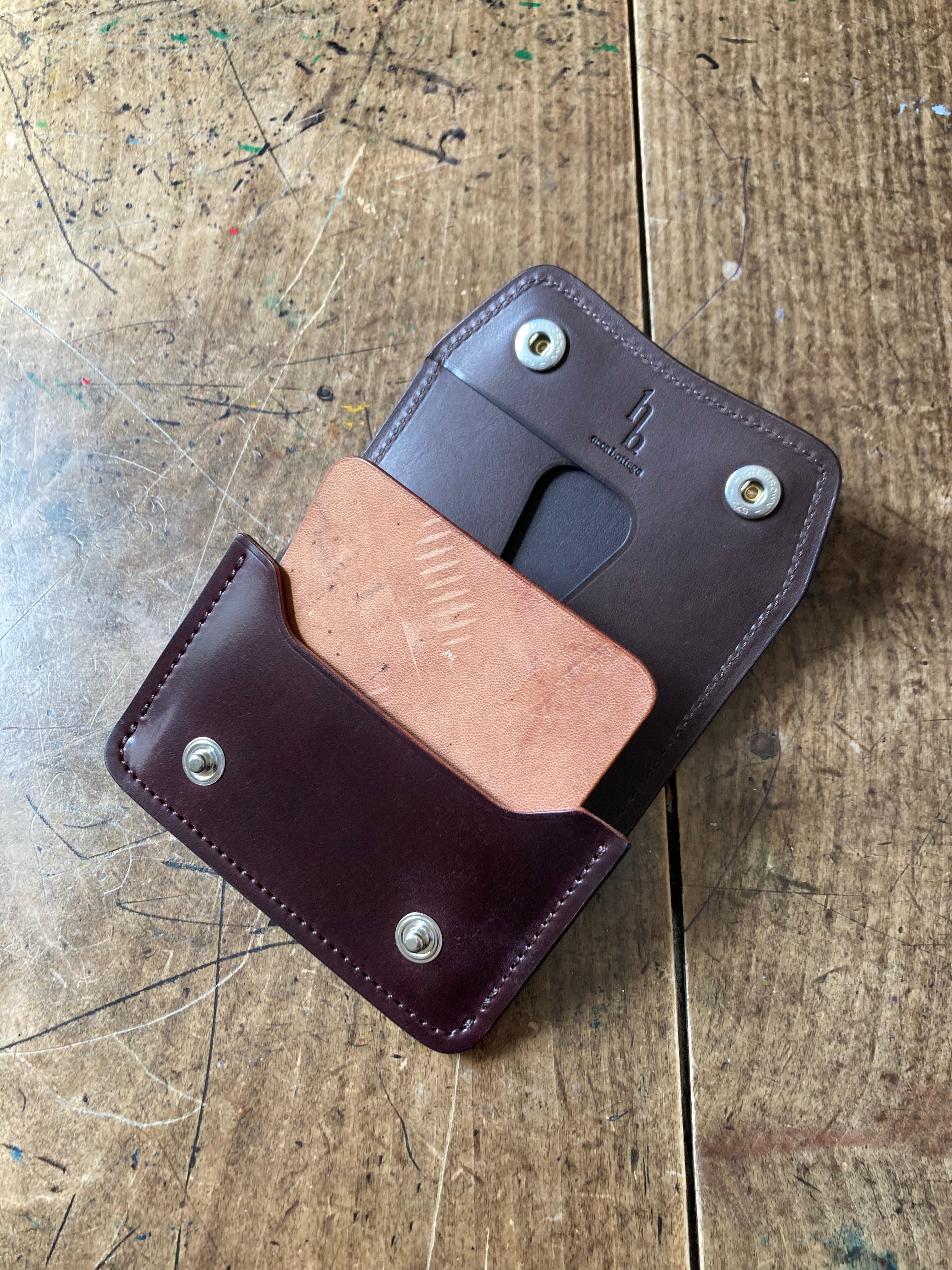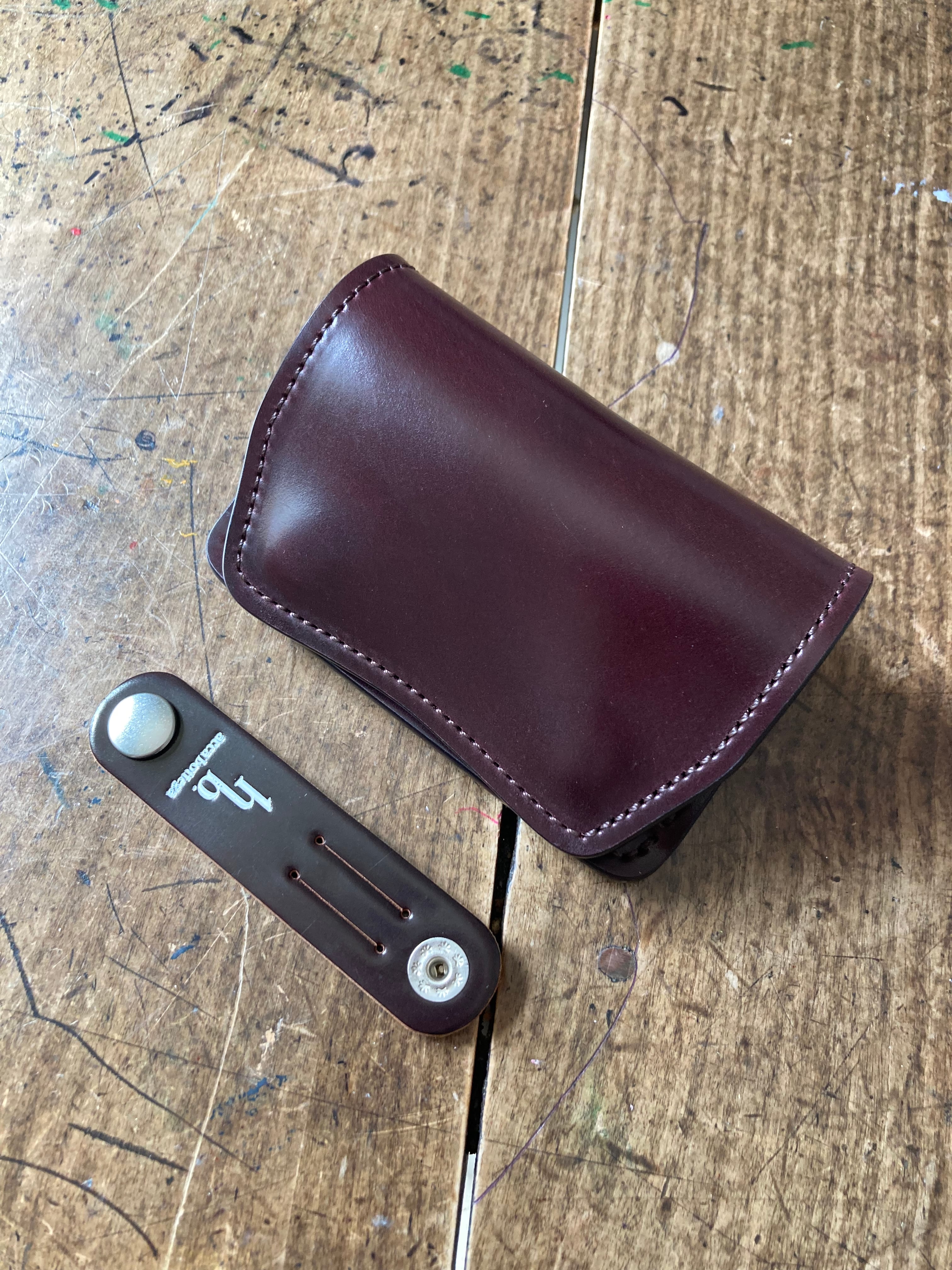 限定商品 「Falce」 ギャルソンミニ財布 シェルコードバン/バーガンディー× リスシオ/カスターニョ